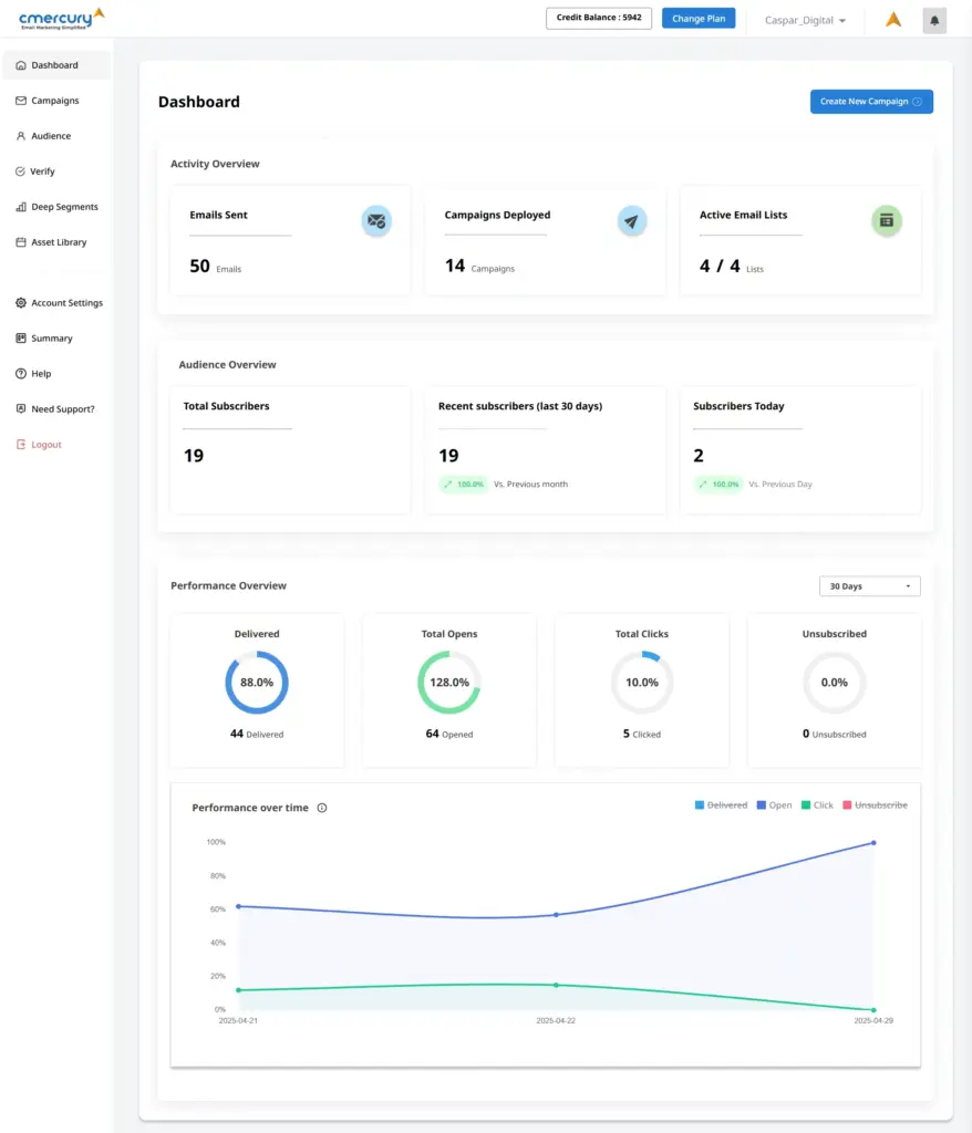 The new cmercury interface is cleaner, faster, and easier to navigate. Whether you’re building your first campaign or managing high-volume sends, the dashboard now works with you, not against you.